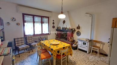 L'appartamento al piano primo dispone di grande soggiorno con caminetto e grande balcone, disimpegno, cucina/pranzo con balcone, 3 camere matrimoniali e 2 bagni. Sottotetto accessibile dal vano scala e costituito da quattro grandi stanze ad uso soffitta (con altezze ben utilizzabili).