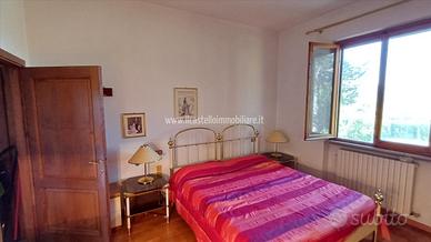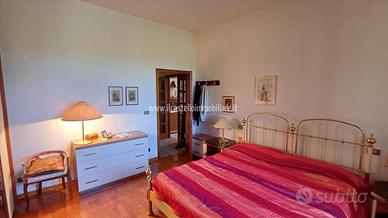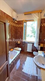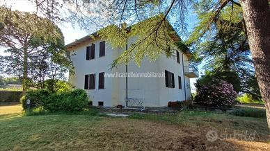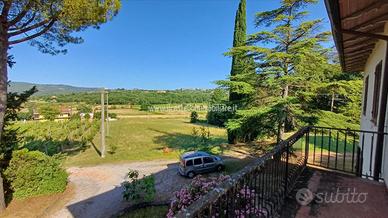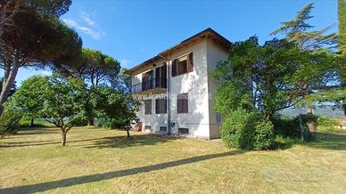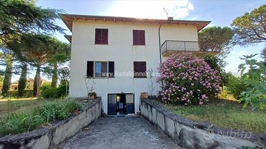 MONTE SAN SAVINO (AR), alla quota di 290 m s.l.m. ed alla prima periferia del paese (l'indirizzo indicato in pubblicità è solo indicativo), vendesi villa in posizione panoramica, soleggiata e con grande giardino di pertinenza (circa 5.334 mq), parte a prato con varie alberature, anche da frutto e parte costituito da un boschetto, all'interno è presente un pozzo artesiano. L'immobile sue due livelli fuori terra ed uno seminterrato, dispone di un appartamento per piano con scala privata per l'accesso al piano primo e di locali per rimessa, cantina, lavanderia etc al piano seminterrato. La superficie complessiva commerciale dell'immobile è di circa mq 387 mq, (in considerazione oltre all'incidenza del giardino, di un appartamento al piano terra di mq 123 circa, di un appartamento al piano primo di mq 135 circa oltre balconi e di un locale al piano seminterrato - altezza 2,20 metri - di circa mq 150, di cui circa 90/100 mq si possono anche utilizzare come autorimessa).