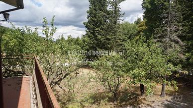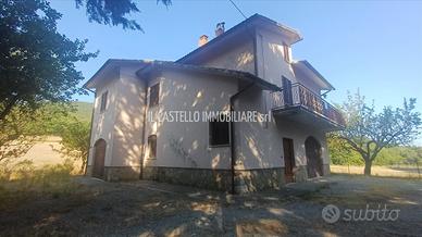 CETONA (SI), alla quota di circa 630 m s.l.m lungo la strada provinciale della Montagna (a pochi km da Sarteano, da Cetona e da San Casciano Dei Bagni), vendesi villa in campagna, con scorci panoramici sulle colline. La superficie catastale complessiva commerciale dell'immobile è di mq 220 (in considerazione dell'unità immobiliare abitativa di mq 191 e del garage di mq 57) inoltre dispone di giardino recintato e confinante terreno agricolo (superficie complessiva circa 16000 mq) per buona parte seminativo e piccola parte boschivo. L'immobile comprende un appartamento al primo piano, autorimessa al piano terra oltre a cantina/rimessa e stanza rustica con caminetto e forno sempre al piano terra