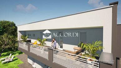 Le due soluzioni sono molto simili e presentano un grandissimo ingresso soggiorno di circa 50mq, con cucina separata, ed uno splendido alzante scorrevole che dà accesso all'importante giardino di circa 500mq, che permette di trascorrere ottimi momenti di relax all'aperto, immersi nella quiete della zona, molto tranquilla ma allo stesso tempo comoda a tutti i servizi, come bus, scuole e supermercati.