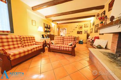 Distribuita su quattro livelli, con giardino antistante e retrostante, la villa è composta al piano terra da un accogliente soggiorno, cucina-pranzo con accesso al giardino retrostante ed un bagno; al primo piano invece troviamo la zona notte, composta da tre camere da letto, un balcone nella matrimoniale ed infine un bagno con vasca; al piano seminterrato invece è presente una versatile cantina attrezzata a tavernetta con camino, due ulteriori vani deposito ed un funzionale garage con rampa di accesso carrabile diretto dall'esterno. La proprietà si completa al secondo piano, dove troviamo la soffitta con un vano mansardato ed attrezzato di armadio a muro, un ripostiglio ed un terrazzino. Situata in ottima e riservata zona di Talsano, la villa offre comodi spazi, ottime rifiniture ed è inoltre dotata di impianto di riscaldamento autonomo, climatizzatori, camino, persiane ed infissi in alluminio con doppio vetro, zanzariere, impianto di allarme e porta blindata, il tutto in ottime condizioni.