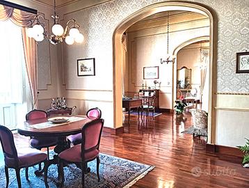 In pieno centro storico di Riposto, l' Agenzia Samuel Immobiliare ha il piacere di presentare in vendita, esattamente ad angolo tra Corso Italia e Via Regina Elena, un affascinate Palazzetto Nobiliare che si sviluppa su due livelli, con una superficie complessiva di circa 700 mq e 500 mq di spazi esterni."Dimora tra fascino ed eleganza d'altri tempi in grado di incantare tutti .Tra decori e dettagli quali cornici aggettanti, intagli, stucchi, fregi decorativi, pregevoli ringhiere e sopraluce in ferri battuti, lavori di ebanisteria con legno di castagno, elementi che caratterizzano l'edificato storico del pieno stile Liberty tra gli ultimi anni dell'800 ed i primi del '900."L'immobile si trova a pochi metri dalla Basilica di San Pietro, dalla Piazza del Commercio e dal Porto Turistico dell'Etna, dal quale si può ammirare il panorama che abbraccia tutta la costa, da Taormina a Torre Archirafi.Posizione strategica, in prossimità del nodo autostradale che serve l'asse per tutte le direzioni della Sicilia orientale.L'ingresso principale del Palazzo è composto da un grande entrata, riccamente decorata con qualità, arricchita dal gioco strutturale di un'ampia ed elegante scalinata monumentale, rivestita in marmo, con ringhiera in ferro battuto e passamano in legno pregiato, che permette di accedere dal piano terra al piano della residenza nobiliare del Palazzo.Al piano primo sono presenti le stanze di rappresentanza, come gli ampi saloni; a seguire troviamo le camere da letto e le altre stanze con servizi ad uso della famiglia padronale.Al piano ammezzato sono presenti altre tre camere adibite a studio, camera degli ospiti e camera da letto, il bagno , con un ampio terrazzo panoramico . Gli interni, dalle volte a crociera, sono abbelliti in modo pregevole da affreschi e decori di stucco in rilievo che rendono ogni ambiente differente dall'altro e che di certo danno ancor più valore ed unicità all'immobile.Anche dall'esterno il piano nobile è riconoscibile p