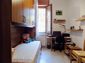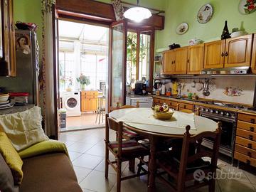 La proprietà, si presenta molto luminosa e soleggiata ed in ottime condizioni, in quanto recentemente ristrutturata; quest'ultima, si articola in due livelli, piano terra e piano primo, ben collegati fra loro mediante scala interna. L'ingresso principale del piano terra, si apre su un vano d'ingresso, a seguire troviamo un ampio e soleggiato soggiorno equivalente a due vani, cucina abitabile con affaccio sulla corte esterna, disimpegno, camera da letto matrimoniale, ulteriore cameretta per i ragazzi e rifinito bagno con vasca. Da precisare che la proprietà è dotata di un ulteriore ingresso che accede direttamente alla corte esterna. Inoltre è dotata di termosifoni, condizionatori ed inferriate in ferro anti intrusione.