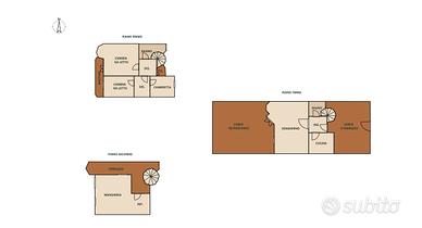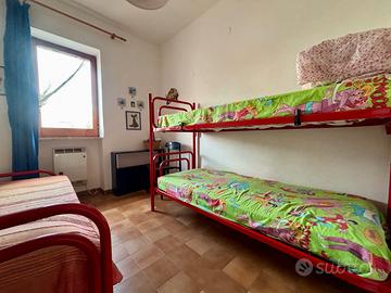 Al piano primo si accede tramite scala a chiocciola in legno. E' qui che si sviluppa la zona notte, composta da due camere da letto matrimoniali, di cui una climatizzata e con uscita tramite porta-finestra sul balcone e da una terza camera da letto singola. Il secondo bagno della casa è finestrato e con vasca.