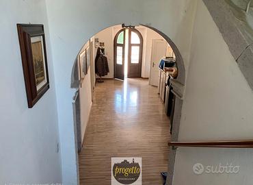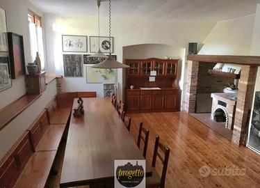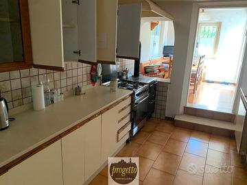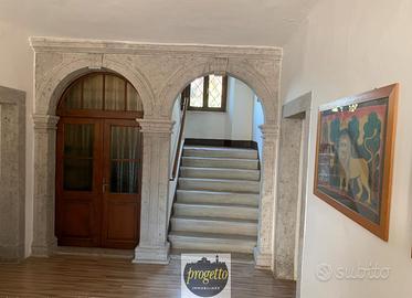Composto da: Piano Terra con spazioso ingresso, vano sottoscala, sala da pranzo, salotto con caminetto, cucina, cucinino/tinello e lavanderia con servizio; accesso, tramite pochi scalini, ad una taverna con caminetto e due cantine; Primo Piano (servito da ascensore) con 3 camere da letto, stanza finestrata/ripostiglio, disimpegno e bagno; ampia soffitta al grezzo, composta da 3 vani, come spazio hobby o per ulteriori camere.