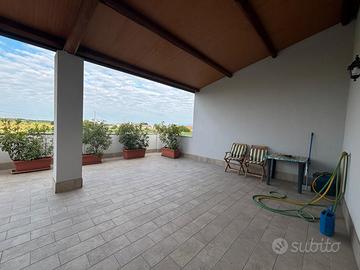 L'appartamento al primo piano è composto da soggiorno, cucina, due camere da letto, corridoio, bagno con doccia a filo, di pertinenza dell'appartamento una bellissima terrazza di circa 35 mq.