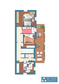o piano primo, camera padronale con bagno e armadi privati dedicati, due ulteriori camere da letto e secondo bagno. Grande terrazza