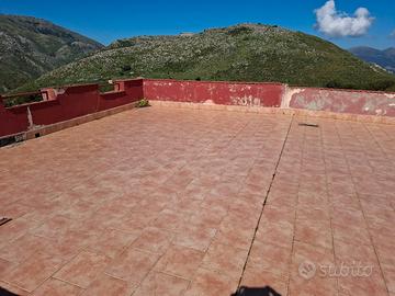 la casa dispone di una camera da letto principale e una cameretta, oltre a un bagno. Al piano terra, un terrazzo scoperto e un piccolo magazzino per il deposito degli attrezzi completano l'offerta. Una scala conduce alla terrazza di copertura di 80 mq, da cui si può ammirare il panorama.