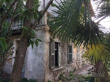 MONFALCONE centro, sulle pendici del Carso proponiamo in vendita un compendio immobiliare costituito da una villa storica di 249 mq. che si sviluppa su tre piani fuori terra risalente al 1886 e presumibilmente ricostruita subito dopo la Prima Guerra Mondiale, con annessi fabbricati adibiti a ex uffici/magazzini di circa 381 mq..