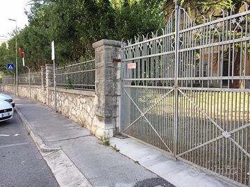 La proprietà è completamente recintata; una massiccia recinzione in tipica pietra carsica delimita la proprietà sul lato principale fronte strada.
