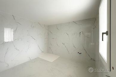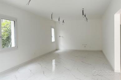 Al primo piano, un comodo disimpegno introduce a DUE spaziose CAMERE MATRIMONIALI, uno STUDIO/guardaroba, una splendida veranda coperta e un elegante bagno finestrato con finiture di pregio in gres effetto marmo. Pavimenti in legno nella zona notte per un tocco caldo e raffinato.