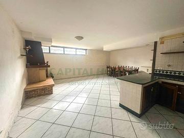 Piano seminterrato troviamo un'accogliente tavernetta già rifinita con caminetto di c.ca 50 mq, con cucinotto e bagno con annesso box auto di proprietà di c.ca 30mq pavimentato