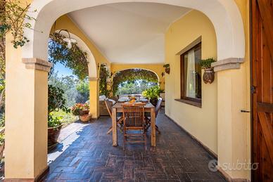Rif 1007-450 Proponiamo in vendita una villa indipendente situata in località Sa Conca Arrubia, sulle colline all'ingresso di Villasimius. La zona è particolarmente panoramica e immersa nella natura mediterranea, ideale per chi desidera vivere in un contesto rilassato e riservato, lontano dal caos, godendo al tempo stesso della tranquillità e di una splendida vista aperta sulla valle circostante. Sa Conca Arrubia si trova a pochi minuti di auto dal centro di Villasimius e dalle spiagge più rinomate della zona, tra cui Simius, Porto Sa Ruxi e Campus, permettendo così di coniugare facilmente la tranquillità della natura con la vicinanza al mare. La proprietà si sviluppa all'interno di un lotto di circa 6.000 mq, ricco di macchia mediterranea e posizionato in un contesto panoramico di grande fascino. La villa è disposta interamente su un unico livello e si compone di una luminosa zona giorno con angolo cottura riservato, mentre il soggiorno si affaccia su un ampio loggiato, perfetto per pranzi e cene all'aperto durante la bella stagione. La zona notte comprende tre camere da letto, tutte arredate con letti matrimoniali, e due bagni. Completa la proprietà una terrazza panoramica sovrastante di circa 40 mq, ideale come ulteriore spazio di relax, oltre a un pratico ripostiglio per gli attrezzi. All'esterno è inoltre presente una comoda area barbecue attrezzata, perfetta per momenti conviviali immersi nella natura. La villa presenta rifiniture rustiche di grande carattere, perfettamente integrate con l'ambiente circostante: pavimenti in cotto, arredi in muratura e in legno massello, e camminamenti in pietra a vista che circondano la casa, contribuendo a creare un'atmosfera armoniosa e accogliente. L'immobile si presenta in ottime condizioni, pronto per essere abitato oppure destinato alla locazione turistica. Può ospitare comodamente fino a sei persone ed è dotato di ambienti climatizzati, oltre a un camino nel soggiorno, ideale per rendere la casa confortevole anche nei m