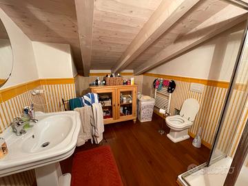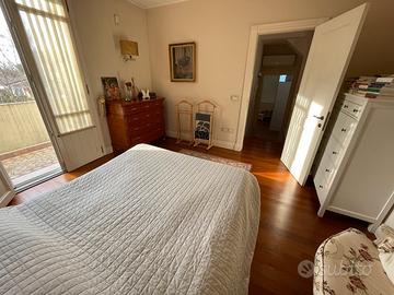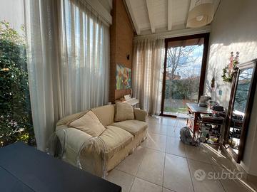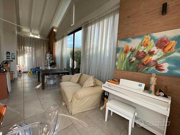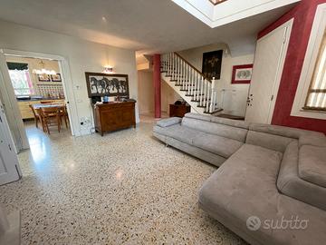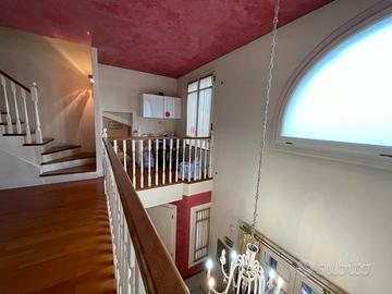 Proponiamo in vendita caratteristica porzione di bivilla su bellissima zona residenziale comoda al centro composta da ingresso su soggiorno con caminetto, cucina abitabile , bagno, garage , lavanderia e ampio e luminoso portico verandato; al primo piano soppalco, camera matrimoniale, bagno e grande stanza sottotetto; al secondo piano mansarda di oltre 40 mq con ripostiglio e bagno. Giardino privato fronte/retro. Ampi spazi interni con riscaldamento a pavimento, allarme, climatizzatori . Da vedere. Rif. MX987