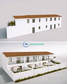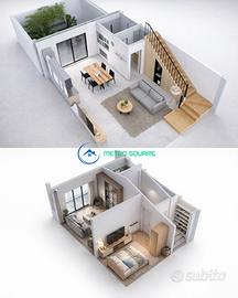 Il piano terra è organizzato equamente in tutte e tre le villette: zona giorno open space, bagno, lavanderia, ripostiglio, cortile e parcheggi dedicati ed esclusivi.