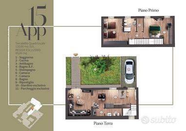 Nuovo complesso immobiliare, zona interna e tranquilla con accesso da cancello privato. Terratetto di 4 vani 110mq su 2 livelli, con propria entrata indipendente: Piano terra - ingresso, ampia zona giorno open-space con accesso al giardino ed un bagno. Piano primo - 2 camere matrimoniali, secondo bagno e ripostiglio. Completa la proprietà un Posto auto esclusivo, con possibilità di acquistare un secondo posto auto a parte. Riscaldamento Termo/singolo a pannelli radianti a pavimento ed aria condizionata. Pronta consegna. Classe Energetica "A+". RIF. 2/0165