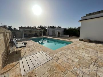 Questa splendida villa con piscina è situata in una posizione tranquilla ma nello stesso tempo abitata. L'architettura elegante e raffinata della villa si fonde perfettamente con l'ambiente circostante, offrendo un'esperienza di vita di lusso e comfort. All'interno, gli spazi ampi e luminosi sono arredati con gusto e attenzione ai dettagli. Le finiture di alta qualità e i colori caldi mischiati con dettagli di costruzione dell'epoca creano un'atmosfera accogliente e rilassante. L'interno di circa 213 mq. è composto da: tre camere da letto matrimoniali, cameretta, due saloni di cui uno con camino, cucinotto, bagno e due verande. Ma è all'esterno che questa villa davvero brilla. La magnifica piscina a sfioro di mq. 32 con solarium , circondata da un curato giardino , invita a momenti di puro relax e divertimento. Ci sono anche spazi per il pranzo all'aperto, un forno antico,gazebo ed area scoperta annessa, un bagno esterno, una doccia esterna, terreno antistante e retrostante per una superficie complessiva di mq. 4.000 circa. Completano labitazione: impianto fotovoltaico 4,5Kw, pozzo artesiano, cisterna, fossa imoff, impianto di riscaldamento/raffrescamento con pompa di calore, climatizzatore, impianto di depurazione dellacqua Culligan, impianto di osmosi per lacqua potabile in cucina, cancello automatico, allarme, servizio di vigilanza. Questa villa è il rifugio perfetto per chi cerca un'elegante combinazione di comfort, stile e serenità.