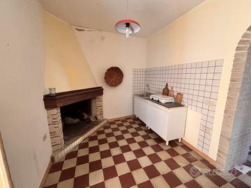 Al piano terra, l'ingresso si apre su un luminoso soggiorno, che conduce a una cucina funzionale con camino, un bagno e una spaziosa camera matrimoniale. Un comodo disimpegno conduce alle scale che portano al primo piano, dove si trovano due stanze e un bellissimo terrazzo ideale per momenti di relax.