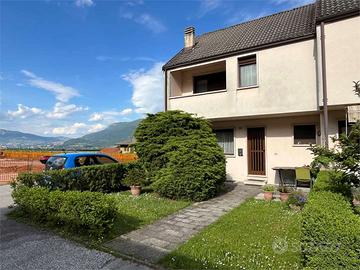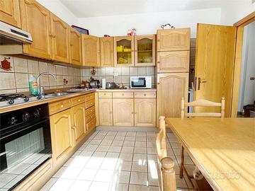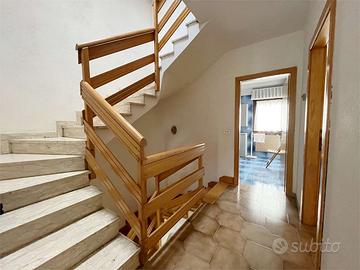 - piano terra: giardino con vialetto di ingresso, atrio, cucina abitabile, ampio ripostiglio, bagno di servizio finestrato, luminoso soggiorno con caminetto e uscita diretta su giardino privato;