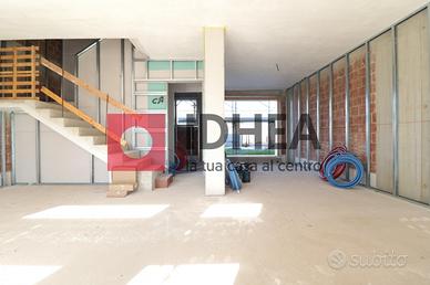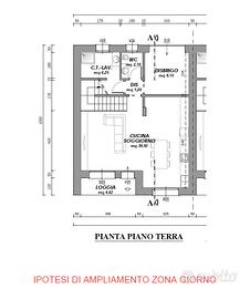 Calandoci nello specifico dell'unità immobiliare, porzione centrale, questa si presenta al piano terra con una zona giorno open-space, un bagno di servizio, vano tecnico/lavanderia e garage. Possibile ampliamento della zona giorno fino a 40 mq. con semplice modifica interna sul vano garage da trasformare a magazzino co