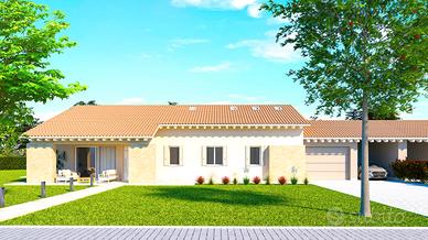 Un'abitazione elegante e moderna composta da ampia zona giorno di circa 60 mq con affaccio su portico e giardino, disimpegno, camera matrimoniale con guardaroba, altre due ampie camere, doppi servizi, lavanderia, centrale termica, garage e portico adiacente per la seconda auto.