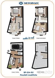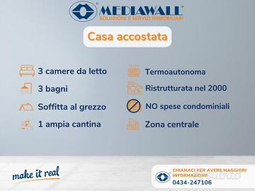 (Riferimento: BP-034-RV) Maniago (BP-034-RV) Proponiamo in vendita, a pochi passi dal centro, un'abitazione accostata ristrutturata nei primi anni 2000, completamente arredata e priva di spese condominiali. L'immobile si sviluppa verticalmente su 3 livelli come segue: piano terra composto da ingresso con piccolo ripostiglio, un primo salotto spazioso e da due bagni, uno con vasca e uno dotato di doccia idromassaggio; Al primo piano una zona giorno formata da cucina abitabile con annessa dispensa, terrazzo spazioso e una camera; Al secondo piano si sviluppa la zona notte con un bagno di servizio finestrato e due camere matrimoniali di cui una dotata di terrazzino. L'immobile dispone anche di un ampia soffitta al grezzo (già predisposta per l'impianto di riscaldamento) dove è collocata la caldaia a condensazione e la zona destinata alla lavanderia. Nella soffitta c'è la possibilità di ampliare l'abitazione creando un'ampia quarta camera da letto. Viene ceduta la proprietà di un'ampia cantina, dove c'è la possibilità di creare un garage. L'abitazione è dotata di posto auto scoperto esclusivo all'interno alla corte residenziale. Nelle planimetrie è possibile vedere lo stato attuale degli spazi e degli arredamenti, ma anche una variante riproducibile con qualche lavoro di ristrutturazione. Dotazioni: doppio portoncino in PVC rinforzato, serramenti in PVC doppio vetro anta/ribalta, stufa a pellet con predisposizione della canna fumaria in ogni piano e solai in cemento armato. Ottima opportunità da valutare. Contattaci e pianifica il tuo sopralluogo!