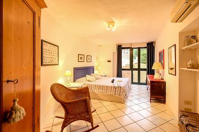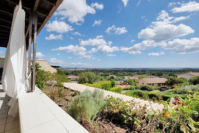 (Riferimento: 29) Pula All'interno del riservato e esclusivo condominio Is Molas Golf, disponiamo di un panoramicissimo villino. La proprietà è composta da un ampio e luminoso ingresso soggiorno, cucina separata, disimpegno, due camere da letto matrimoniali e bagno. Dispone inoltre di un ulteriore spazio indipendente con zona lavanderia. Una splendida terrazza panoramicissima vista mare, un riservato spazio giardino e due posti auto di pertinenza completano questa bella soluzione.