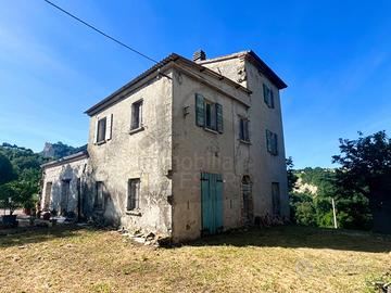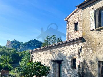 (Riferimento: B865.2) SAN LEO in posizione panoramica ai piedi del castello, proponiamo in vendita storico RUSTICO in pietra abbinato su un lato e disposto su tre piani con TERRENO di oltre due ettari. Accanto all'abitazione una dèpendance totalmente in pietra e disposta unicamente al piano terra. L'abitazione che conserva il fascino del tempo si compone al piano terra di tre vani da utilizzare come depositi/magazzini e bagno di servizio. Al piano primo il soggiorno, cucinotto e una camera. Al piano secondo due ulteriori camere da letto. All'ultimo piano (terzo) la soffitta. Infine al piano seminterrato tre ulteriori vani da utilizzare secondo le proprie esigente. La soluzione si presenta DA RISTRUTTURARE.