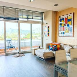 ?Il piano terra ha doppio accesso ,sia interno da scala dal seminterrato che da terrazzo privato posizionato di fronte al giardino; è composto da doppio salone, cucina con camino che affaccia sul terrazzo, corridoio, bagno, camera da letto e lavanderia. ?Al primo piano si accede sempre da scala interna e rispettivamente vi sono tre camere da letto tutte con bagno in camera ed ognuna di esse ha un terrazzino privato, più una lavanderia sul pianerottolo.