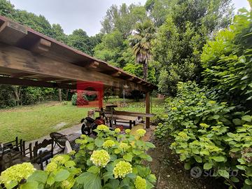 Completa la proprietà un garage inserito nel corpo del fabbricato da cui è possibile accedere direttamente all'abitazione e splendido giardino piantumato e con pompeiana in legno.
