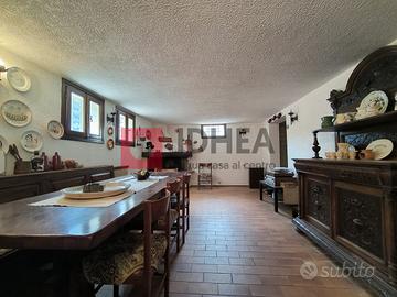 L'immobile di generose metrature, costruito su tre livelli, è così composto: al piano rialzato, ampio ingresso , soggiorno di ca 31 mq, cucina con angolo cottura di complessivi 22 mq, bagno; al piano primo tre camere matrimoniali , studio e bagno; al piano seminterrato taverna con angolo cottura di complessivi ca 30 mq con bel camino funzionante, cantina , bagno.