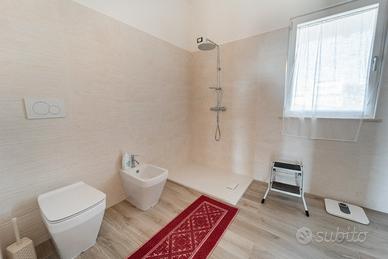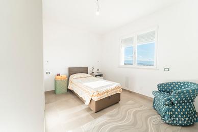 Sempre allo stesso livello, tramite disimpegno, troviamo il primo ampio servizio sanitario con doccia, un ripostiglio e la prima camera da letto con balcone.