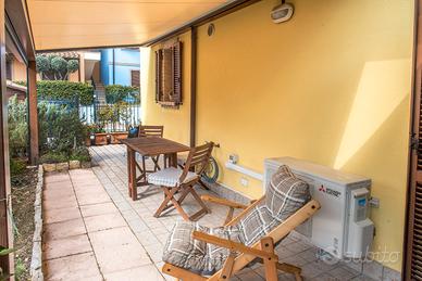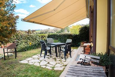 Ha ingresso indipendente ed è libera su tre lati: comodo giardino per mangiare all'aperto e godersi momenti di relax con tenda parasole, oltre ad una parte pavimentata con veranda e tenda richiudibile automaticamente, la proprietà è completamente recintata.