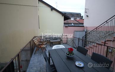 IN ESCLUSIVA proponiamo in centro Figino Serenza, comodo per tutti i servizi di paese, soluzione terra-cielo indipendente composta da soggiorno con angolo cottura e servizio al piano terra, scala al primo piano dove si trova la camera matrimoniale con bagno padronale e scala ad un ulteriore locale, quest'ultimo mansardato. La scala esterna porta al terrazzo.