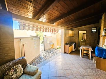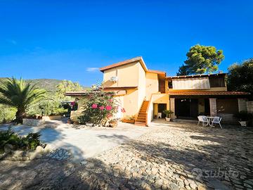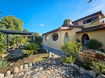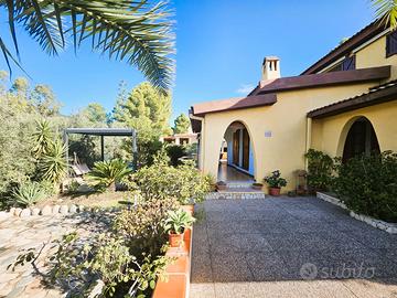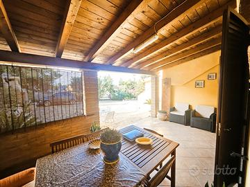 Un ampio giardino avvolge la casa su tre lati, arricchito da ulivi secolari, palme e bouganville in fiore. Gli spazi esterni, completi di loggiati vivibili, barbecue e docce all'aperto, offrono un'oasi ideale per pranzi in famiglia e momenti di relax all'aria aperta.