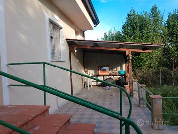 L'immobile é circondato da un lato da un ampio spazio pavimentato utile anche per il ricovero di automezzi e dall'altro da un giardino e terreno con alberi da frutto e orto per di circa 1.200 mq interamente recintato, con corte chiusa da cancello, tale da garantire momenti di privacy all'aperto.