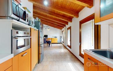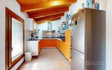 INTERNO: l'ingresso è in ampio disimpegno a cui è collegato il vano scala per conduce al piano superiore dove si può godere della soluzione tutta su un unico piano. Entrata in zona Living interamente mansardata in legno, costituita da ampia cucina confortevole e una sala altrettanto ampia con stufa a Pellet, disimpegno notte dove dove troveremo camera da letto, 2 camere 3/4, doppio servizio, lavanderia e ripostiglio. Le metrature generose permettono di poter godere di spazi e zone in completo relax.