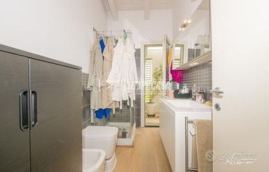 Primo Piano: Salendo al primo piano, troviamo la zona notte composta da due camere da letto. Una delle camere è una spaziosa matrimoniale che vanta un comodo soppalco da adibire a cabina armadio o a studio privato. Un ulteriore bagno serve comodamente questo piano