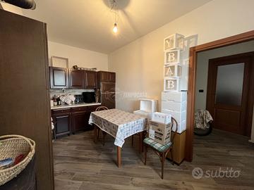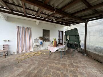 Al primo piano, collegato da scala interna, si sviluppa la zona abitativa principale che si compone di cucina abitabile, sala da pranzo, soggiorno, camera da letto, un ampio disimpegno e due servizi. Tutto questo livelli gode di uno sfogo verso l'esterno grazie ad un balcone che percorre l'intera facciata.