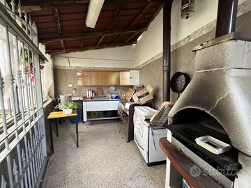 Esternamente sono presenti tre ampi box auto, un'ampia travata ed una serra.
