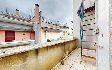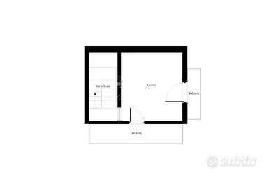 Accogliente zona giorno con cucina completa di fracassè, ripostiglio nel vano scala, balcone e terrazzino di circa 7 mq: uno spazio perfetto per rilassarsi all'aperto.