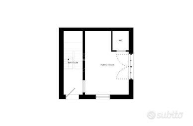 Ingresso sia dal vano scala che dall'esterno, ampia stanza con fracassè e bagno per disabili. Perfetto come studio, miniappartamento o spazio dedicato ad attività professionali.