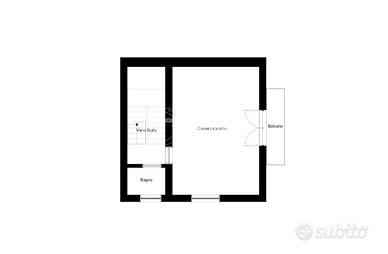 Grande ambiente con balcone privato e bagno, luminoso e riservato, ideale come camera matrimoniale o mini-suite.