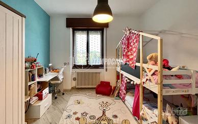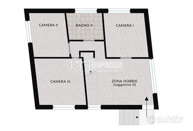 Salendo al primo piano si accede a un secondo soggiorno/zona giochi, reso luminoso da una grande vetrata con splendida vista sul Monte Resegone. Completano il piano una cameretta, un ripostiglio, una seconda cameretta, un bagno con vasca e una camera matrimoniale.