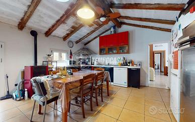 L'immobile, ristrutturato tra il 2014 e il 2017, è in buone condizioni e presenta le seguenti caratteristiche: doppi ingressi (porta in legno antisfondamento e porta blindata), citofono e videocitofono, pavimenti in gres, laminato e marmo, bagni rivestiti in gres, infissi in legno e vetro singolo/doppio vetro, pvc e doppio vetro, al primo piano predisposizione per impianto di climatizzazione, riscaldamento autonomo con caldaia (24 kw) e stufa a pellet, coibentato internamente, pannelli fotovoltaici e boiler per acqua calda.