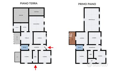 A Castel Maggiore, proponiamo in vendita una SOLUZIONE INDIPENDENTE di 304 mq, disposta su due livelli, circondata da un ampio giardino privato di 620 mq, ideale per essere suddivisa in due appartamenti separati o come abitazione unica per famiglie numerose. L'immobile è così disposto: