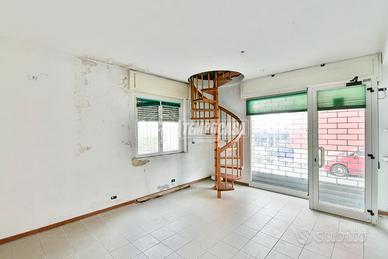 Al piano terra, con accesso diretto dalla strada, è presente un negozio accatastato come C/1 di circa 50 mq, completo di una vetrina fronte strada che garantisce visibilità e praticità per attività commerciali o studi professionali. Possibilità di trasformazione in box auto/taverna. Completano la proprietà una porzione di sottotetto e un box auto DOPPIO.