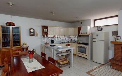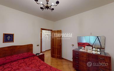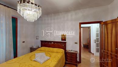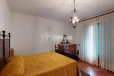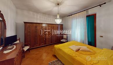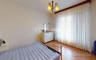 Ingresso, soggiorno con uscita su giardino, cucina abitabile, corridoio notte, due camere matrimoniali entrambe con uscita sul balcone e bagno finestrato con vasca.