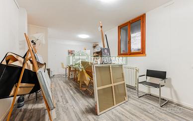 Tramite la scala posta nella zona giorno accediamo al piano interrato costituito da un secondo soggiorno, servizio, camera e uno studio.