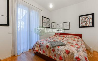 Ingresso su ampio soggiorno, cucina abitabile, camera da letto con spazio esterno, cabina armadio e servizio.